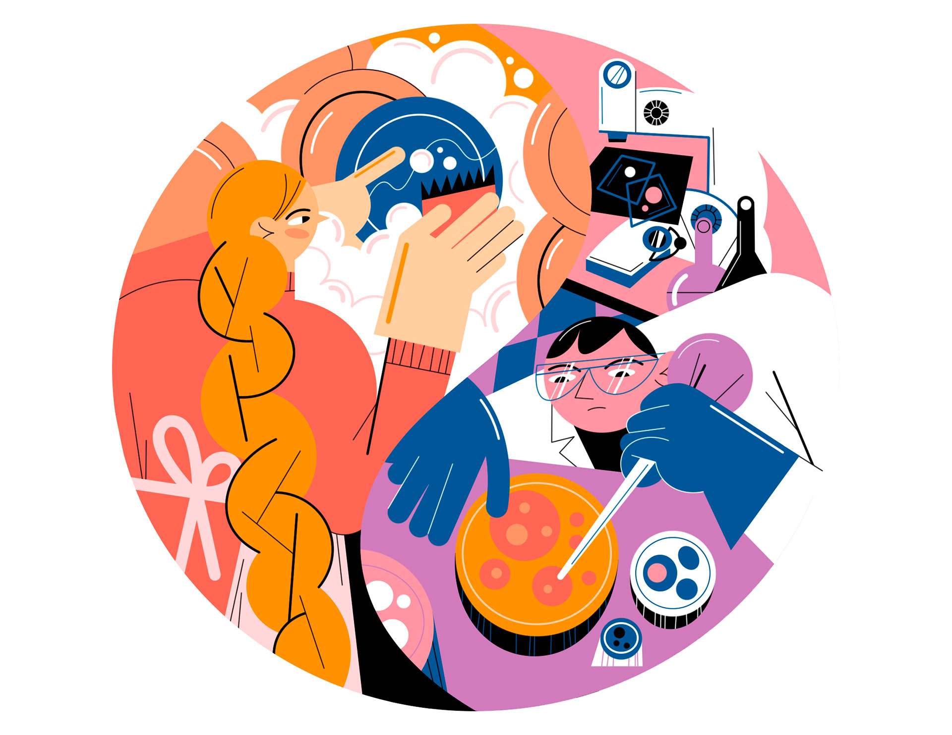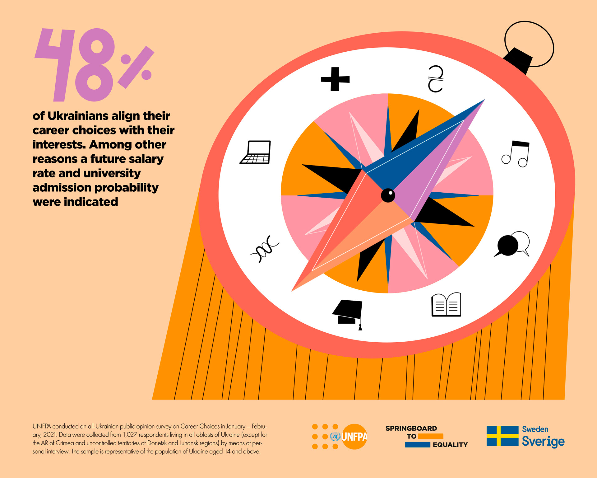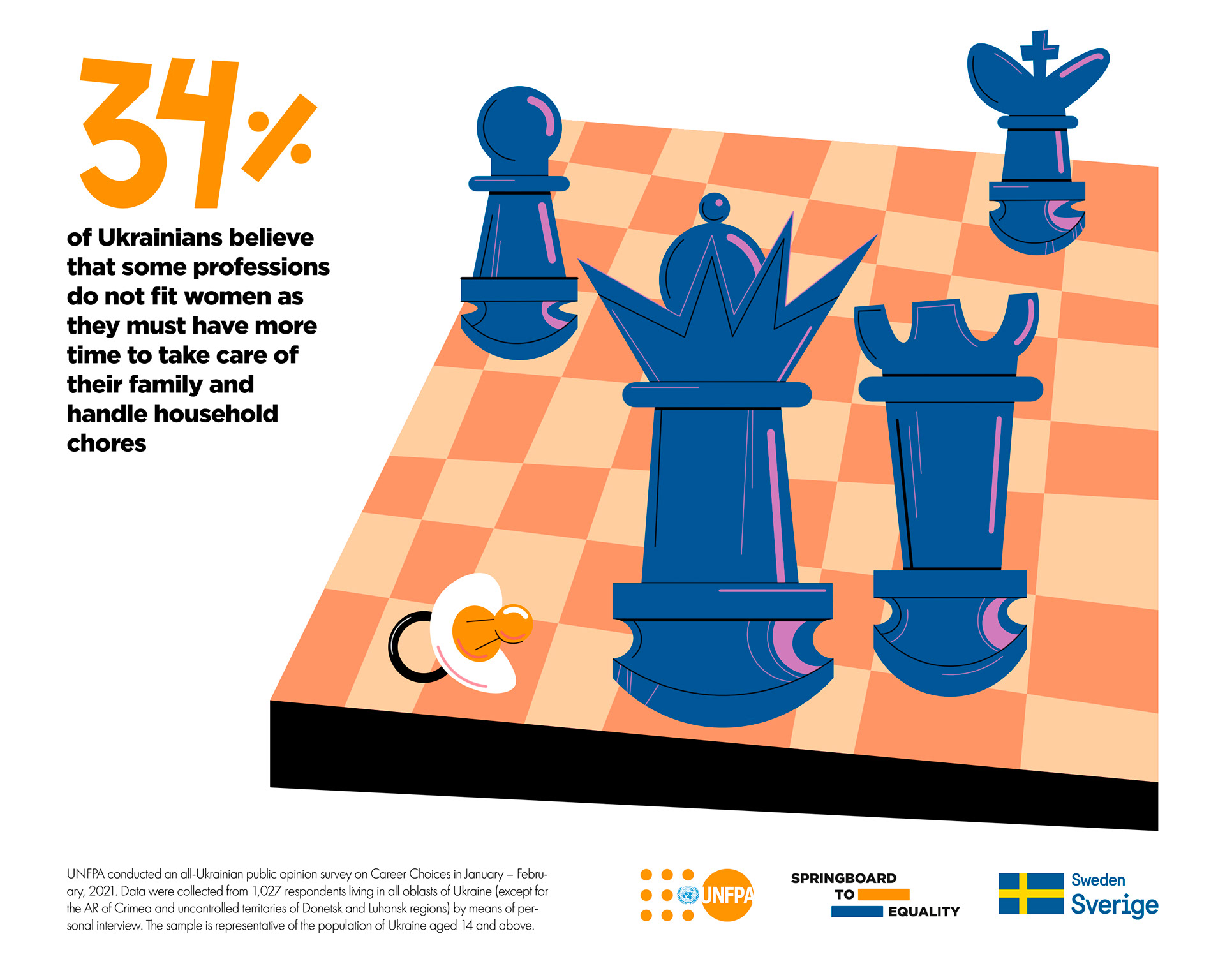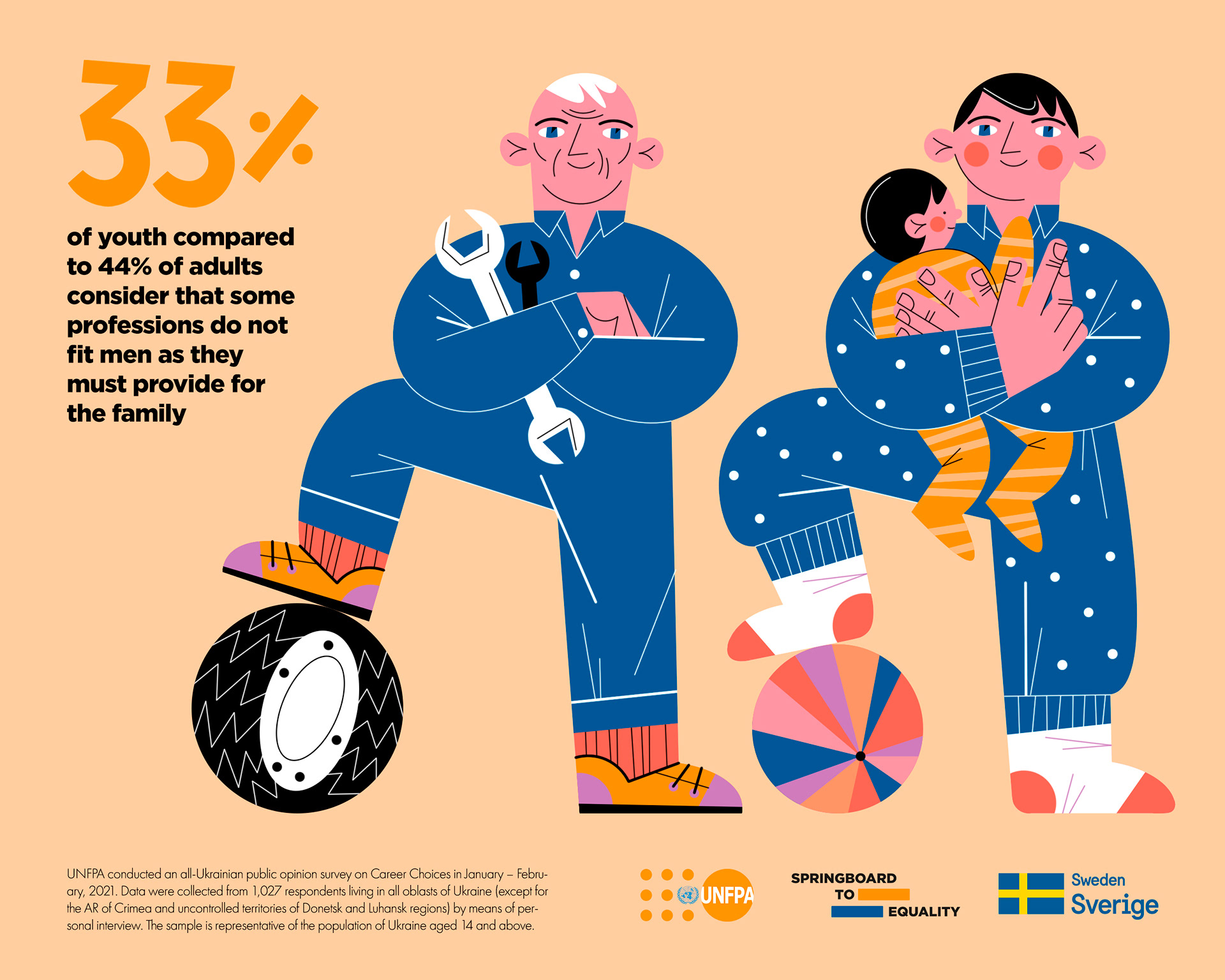 Illustrations and layout for United Nations Population Fund campaign on gender stereotypes about career and occupation.