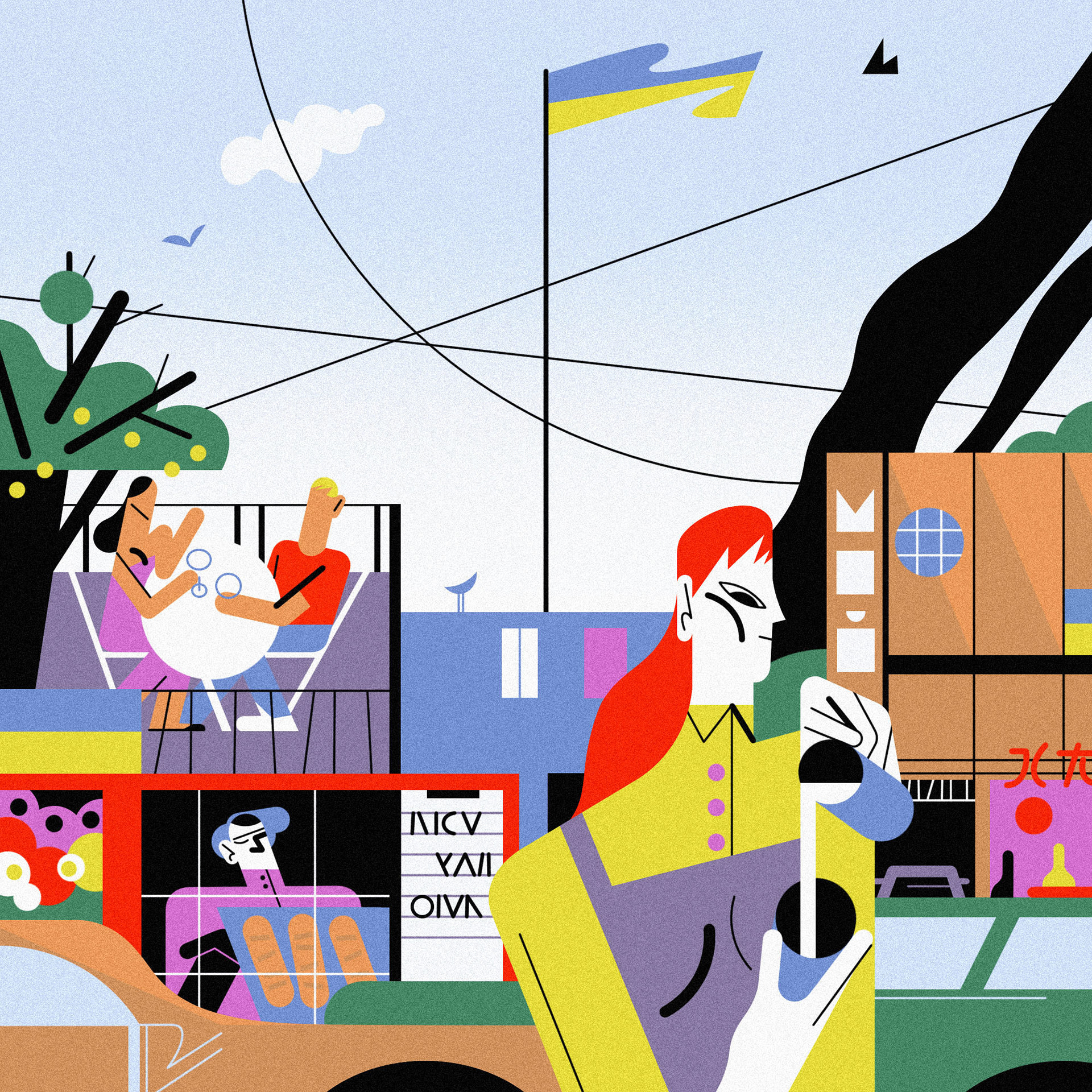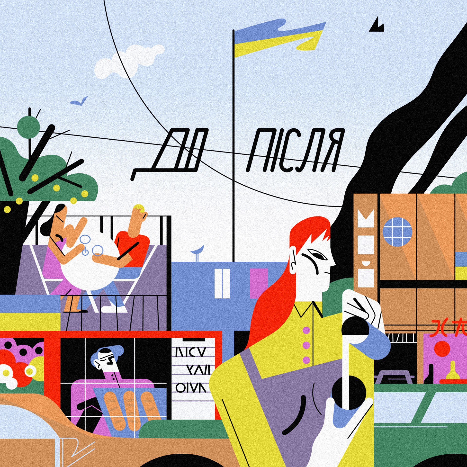 A cover for the Before And After podcast about Ukrainian businesses that keep going despite the war.