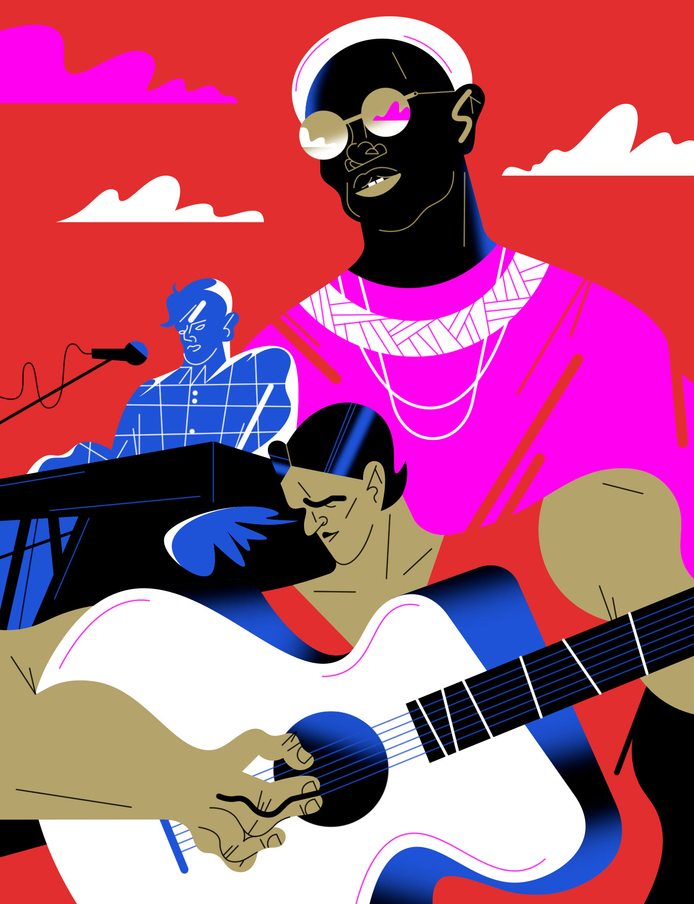 Illustrations for the Goings On About Town section of The New Yorker. I had to pick two or three events for each category: music, theatre, dance, movies, and art, and mix them into one.