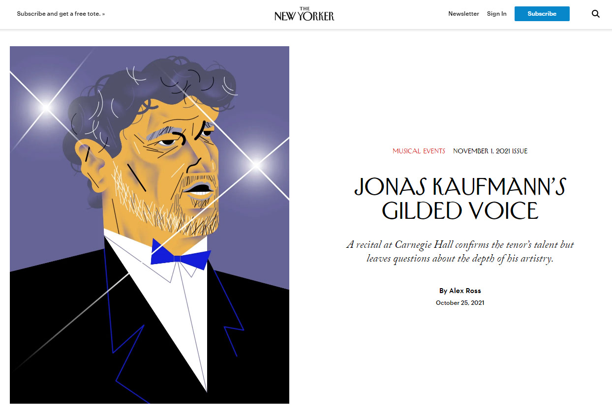 Jonas Kaufmann's portrait for The New Yorker. AD Aviva Michaelov.