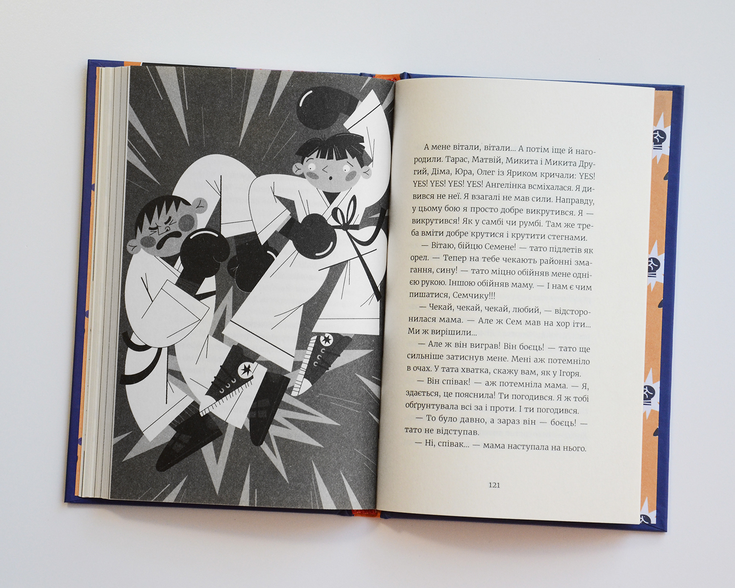 Cover and illustrations for children's book Sem, No Problem by Oksana Lushchevska for The Old Lion Publishing House. It's an adventure story about the boy who wants to dance but is forced to pursue a "manlier" hobby.