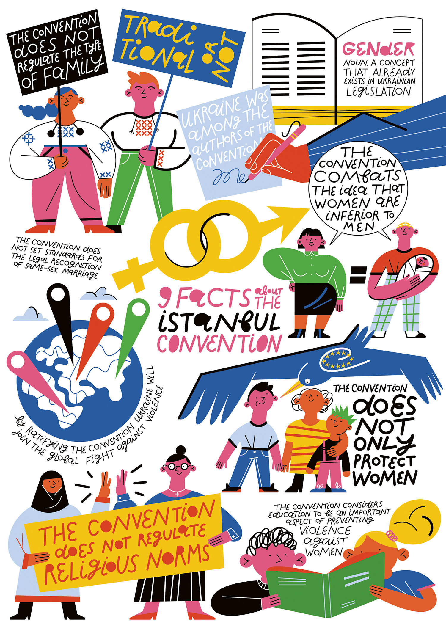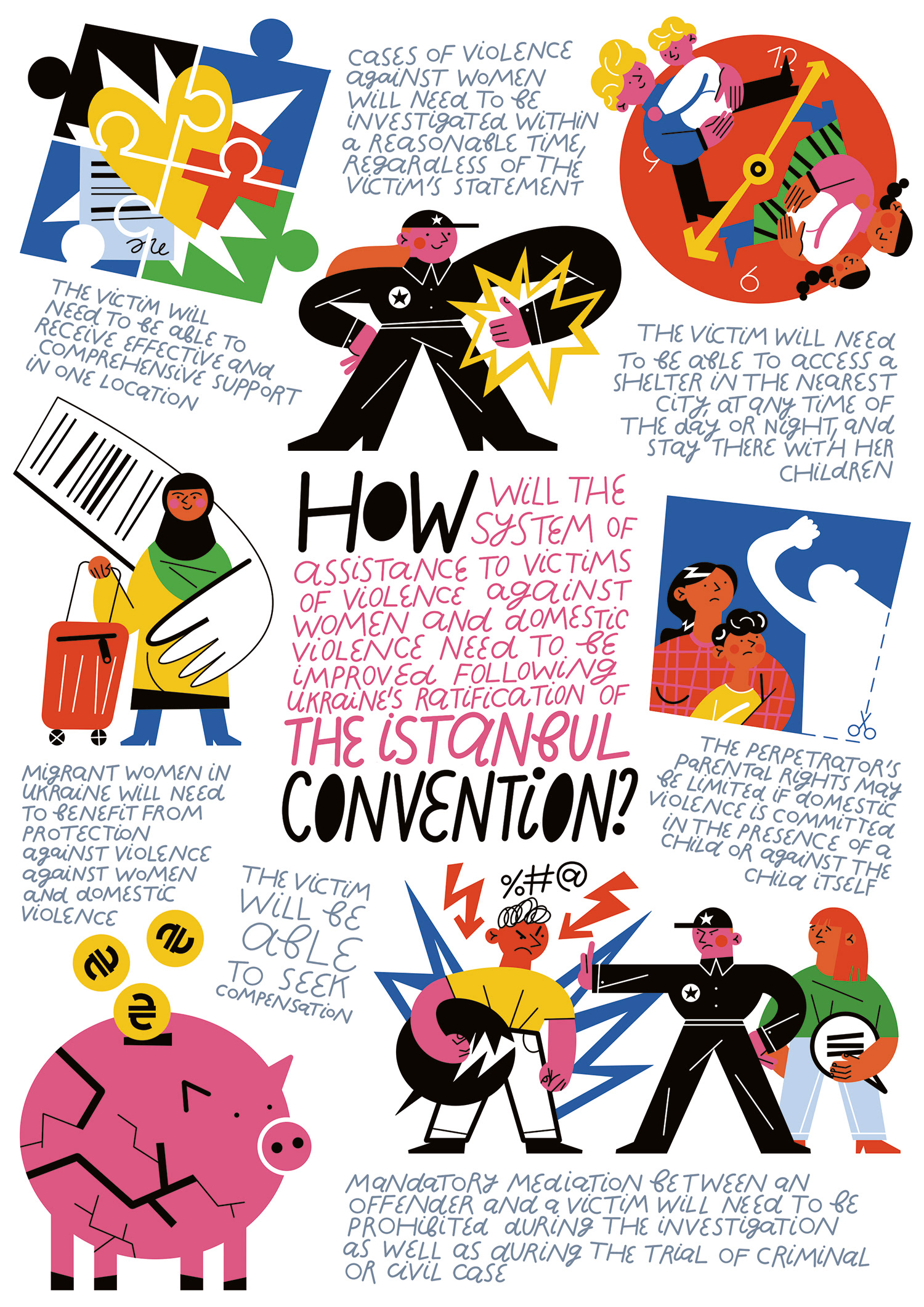 Illustrations, layout, and lettering for Council of Europe campaign on the Istanbul Convention in Ukraine.