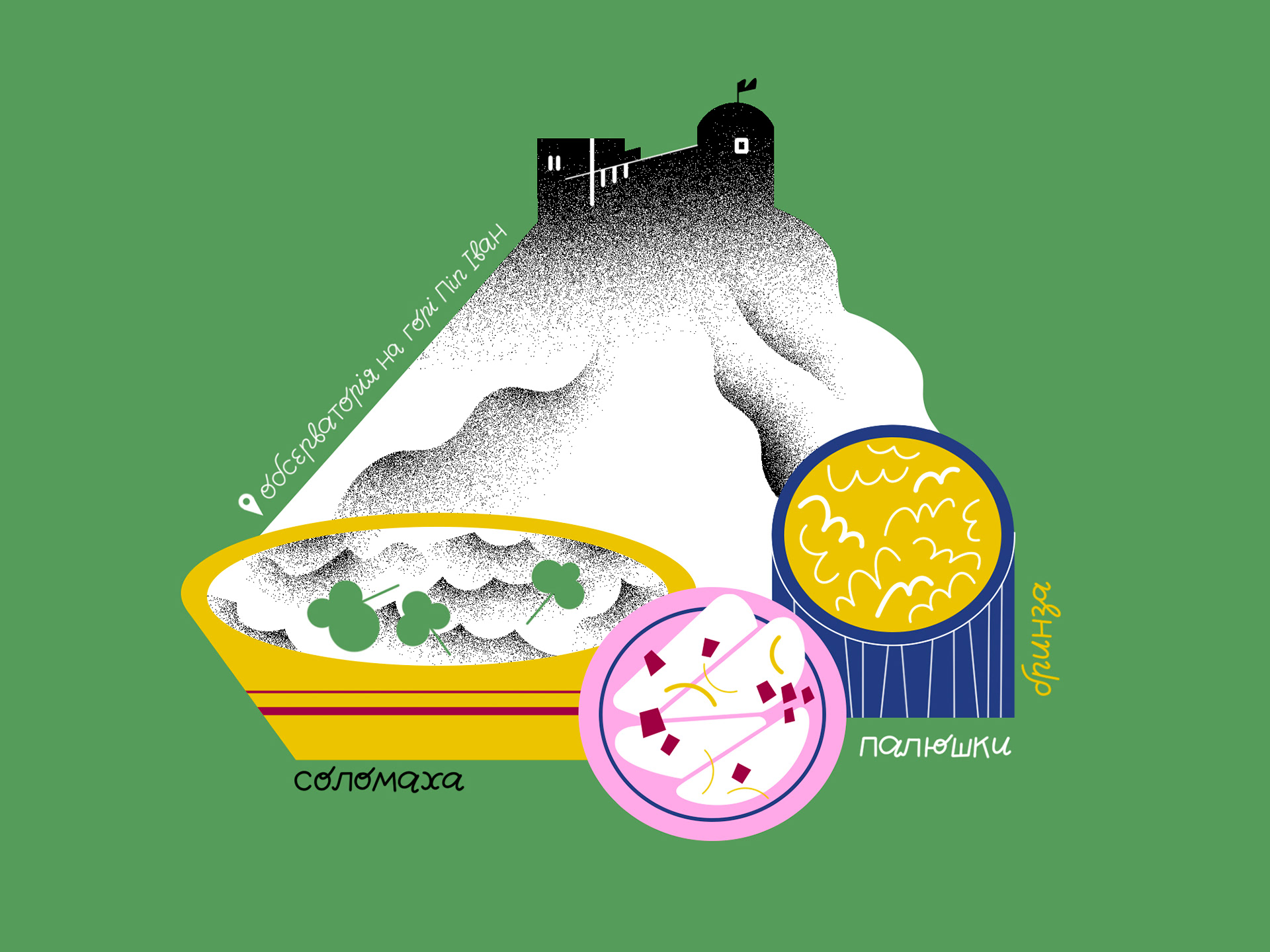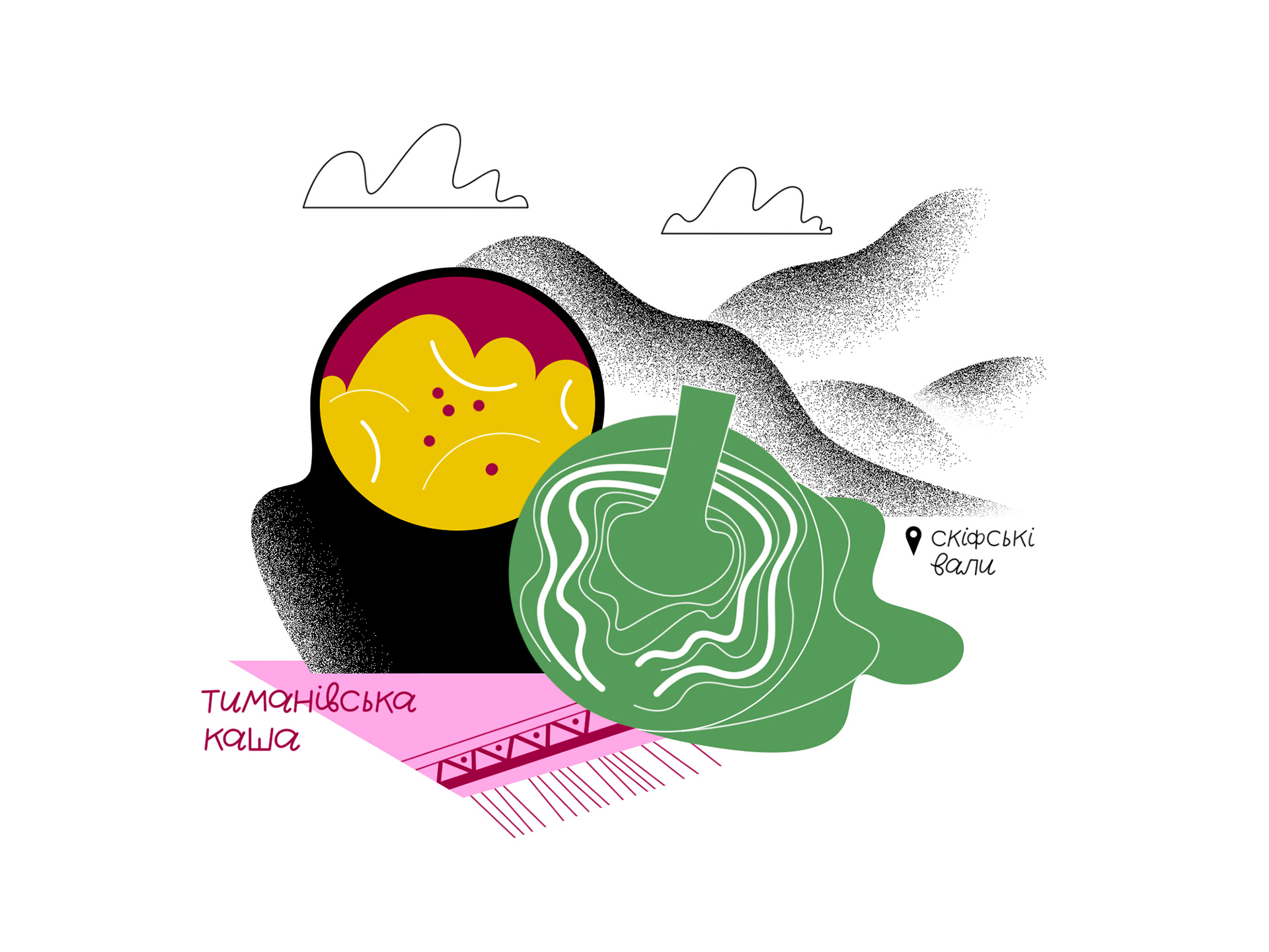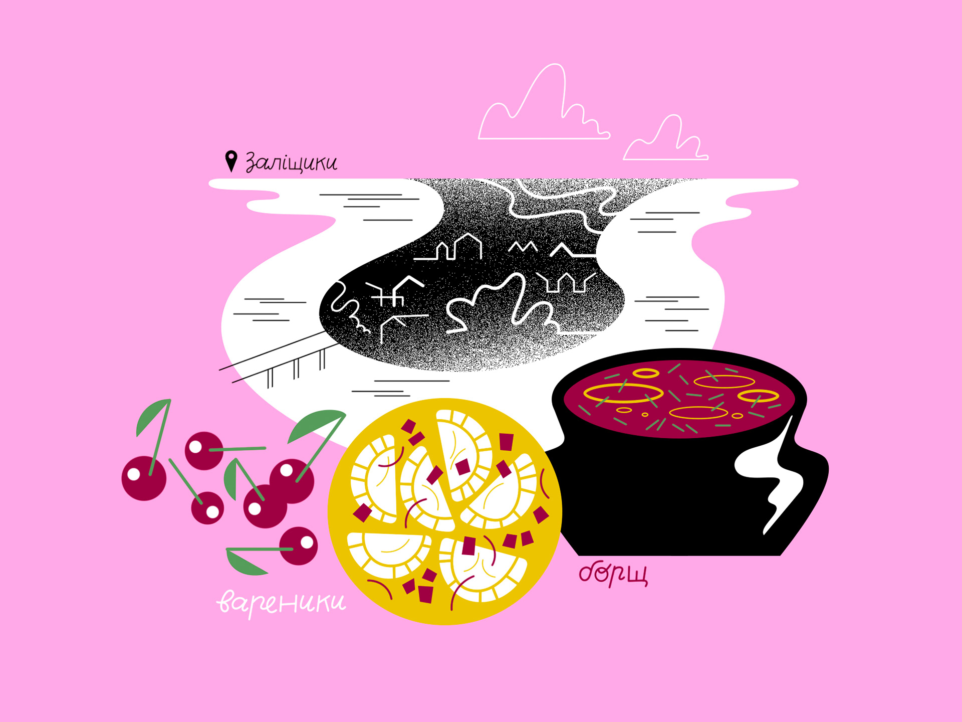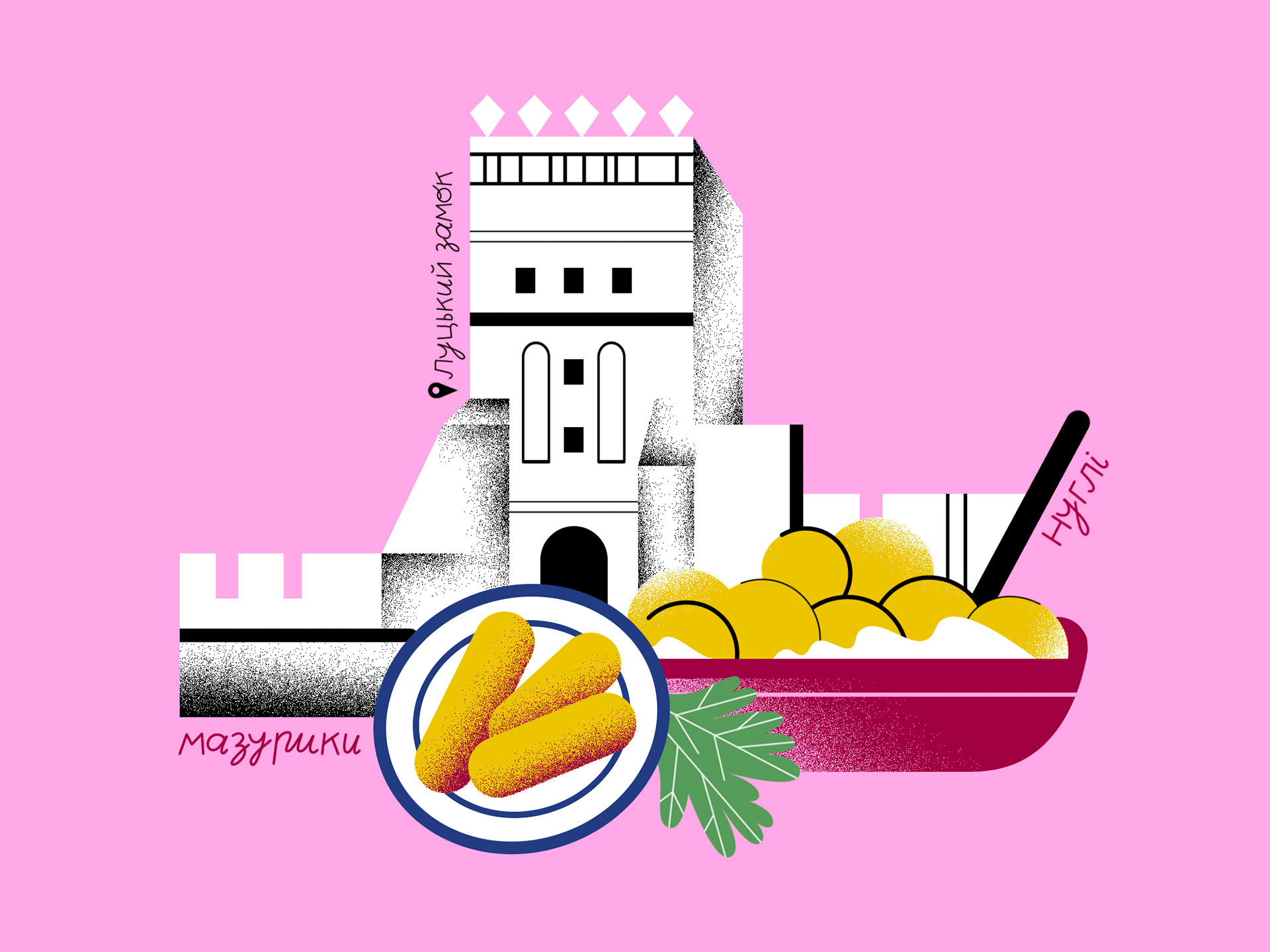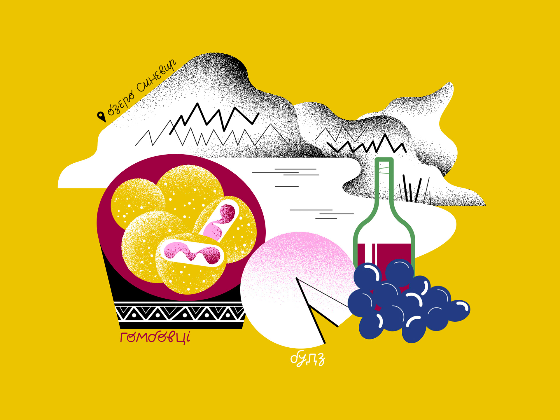 Illustrations and lettering for Ukrainian Food Map, a project by Youth Media Lab.